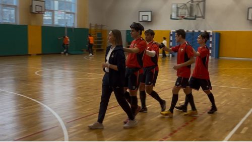 Учащиеся приняли участие в необычном матче — футбол слепых 3х3. Это дисциплина, где игроки ориентируются исключительно на слух, используя специальный мяч со звуковыми элементами.